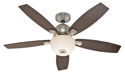 OrderNow Hunter 28704 Skyline 52-Inch 5-Blade Single Light Ceiling Fan, Brushed Nickel with Eurasian Wood/Maple Blades and Frosted Glass Bowl
